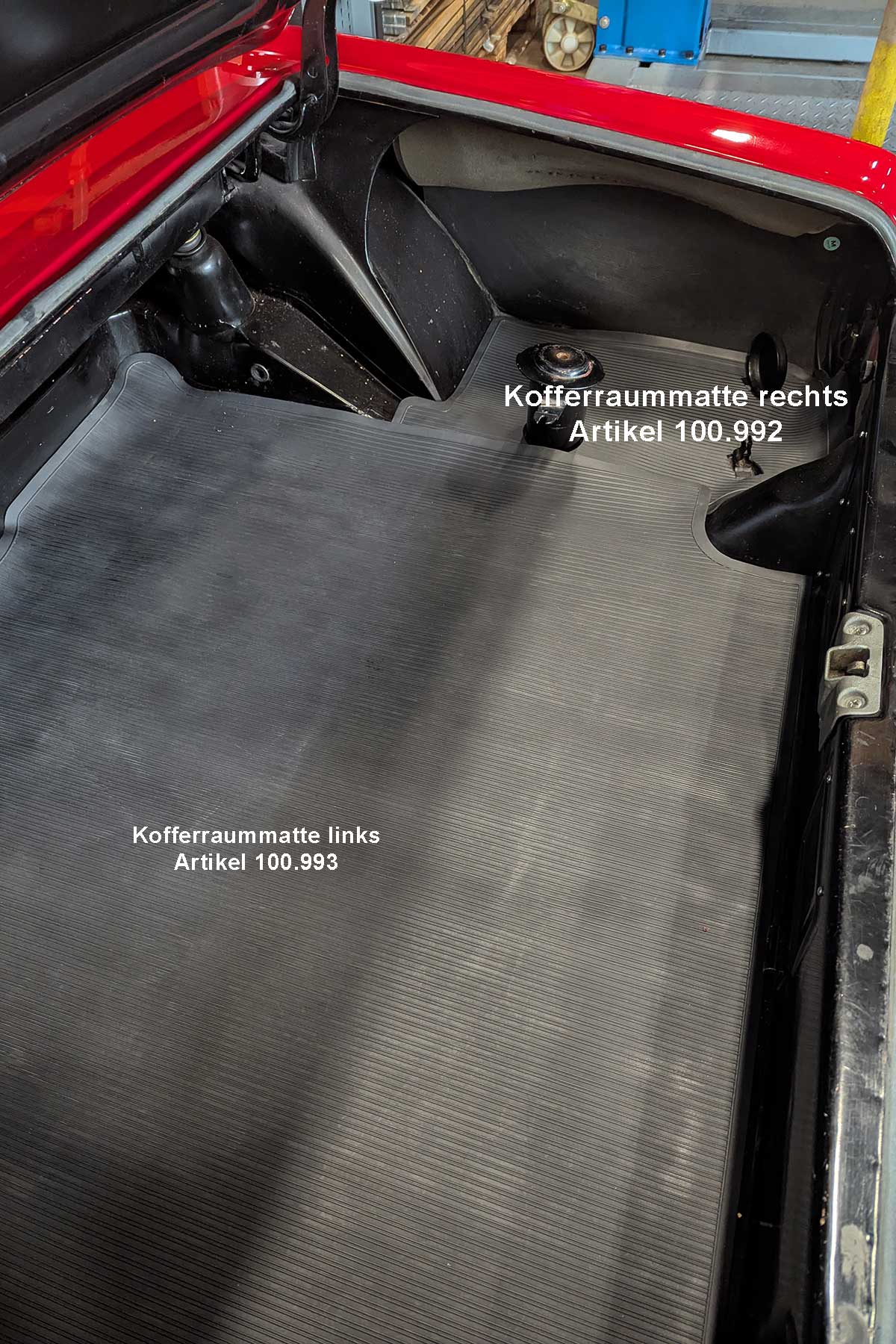 Diese Matte ist in vielen Fahrzeugen spröde, brüchig oder nicht mehr vorhanden. So sieht der Kofferraum ohne diese Matte aus: